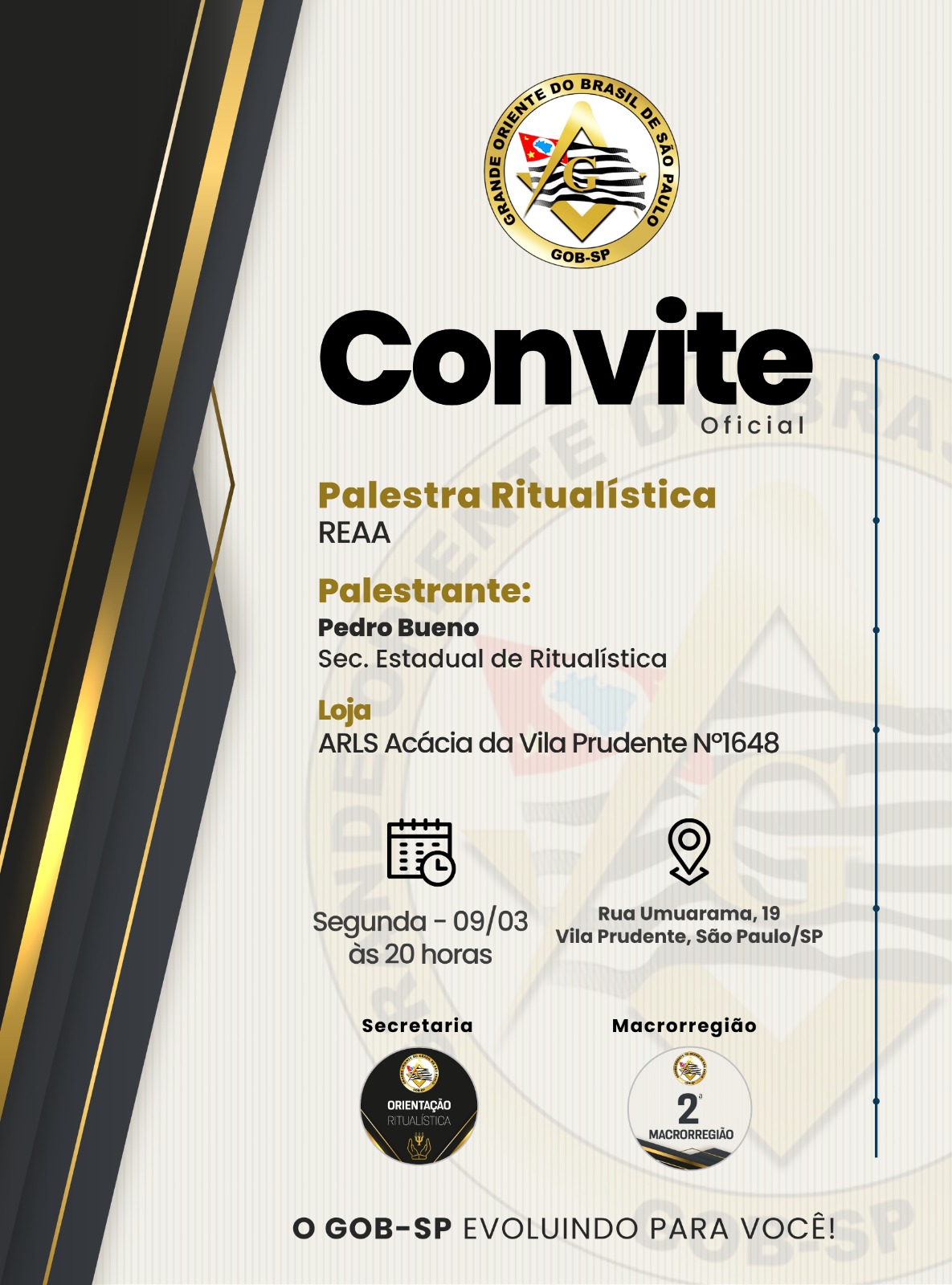 A LOJA YPIRANGA Nº 0083, jurisdicionada ao Grande Oriente do Brasil – São Paulo (GOB-SP) e situada no Oriente de São Paulo, realizou no dia 4 de março de 2026 uma Sessão Magna Maçônica pública