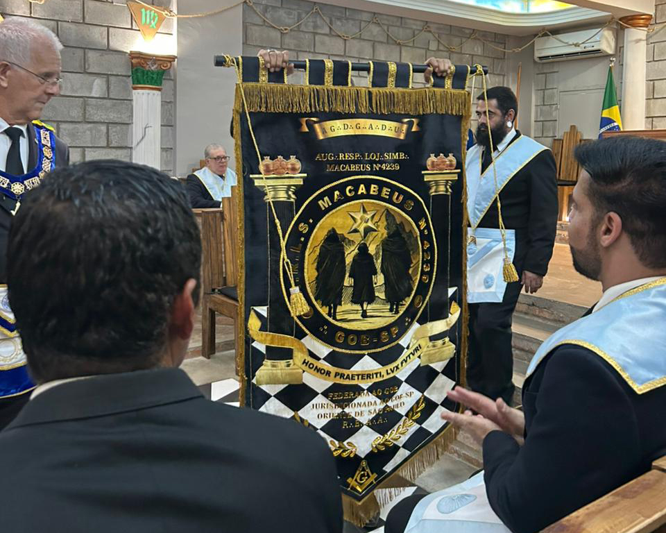 A Loja Macabeus Nº 4239, do Oriente de São Paulo, pertencente à 02ª Macrorregião, realizou neste sábado, dia 28 de março de 2026, uma Sessão Magna de Consagração de Estandarte. A cerimônia ocorreu no Templo situado à rua Osvaldo Arouca, 409, na Vila Formosa, e foi conduzida de acordo com os preceitos do Rito Escocês Antigo e Aceito. O evento contou com a presença do Eminente Ir∴ Ruberval Ramos Castello, Grão-Mestre Estadual do Grande Oriente do Brasil – São Paulo, que presidiu os trabalhos.